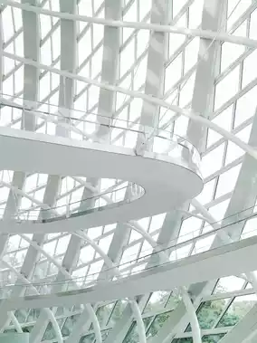 The Phoenix Center is an extremely stunning building both indoors and outdoors. There are many white corridors floating in the air in the main hall, and the architectural design is inspired by the Möbius strip of human philosophy and mathematics. Especially when the sun sets, countless spots of sunlight will shine down and intertwine with the giant steel frame, which is so beautiful!