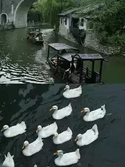 Chaohechuan Bridge: By the pier, rowboats gather, white geese leisurely swim, and from the bridge, a different world unfolds.