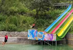In addition to seeking cool entertainment water projects in the scorching heat, tourists can also climb the glass plank road and wooden plank road to overlook the charming scenery of the Juma River, view the distant mountains and nearby scenes, and relax. It is midsummer, the last heat after autumn, what are you waiting for? Act quickly, leave your home, hide in the mountains and rivers, and enjoy the coolness.