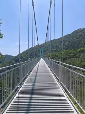 After exiting the Jurassic Forest, there is a floating bridge for 30 yuan per person. Note that it is not made of glass, and the bottom is hollow, so your phone can fall through. Be very careful! If you don't take this bridge, you can continue walking in the mountain. If it's your first time, it's recommended to take the bridge, as the scenery from the bridge is great.