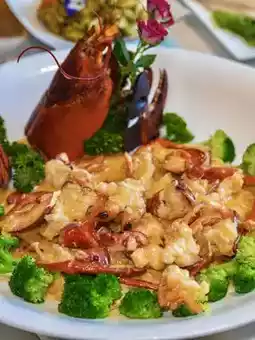 Lobster with pasta, this dish is too good. The large lobster meat is chewy and covered with cheese. Take a bite of the pasta, it's smooth and chewy, and very satisfying.