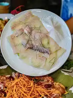 The chef's knife skills are amazing. The sashimi is crystal clear and looks very appetizing. Paired with more than a dozen ingredients, the sweetness of the sashimi is fully released. The taste is fresh, tender, and smooth, with a rich texture.