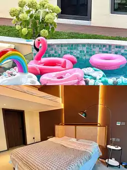 $ The parent-child room where a friend's family lives is also great, with a ball pool and children's slide, the little girl is so happy, and the parents are also saving trouble! The sunken rest area and constant temperature swimming pool of 7mu are also great. The children's swimming ring and other homestays are well prepared! The swimming pool is also good for taking pictures! It's another scene after the lights are on at night! The terrace can also enjoy the night sky and stars, which is unthinkable in the city!