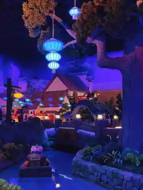 This zone will take you to follow the adventures of the panda Po, who is on a mission with the ⛵️ Kung Fu Panda Journey of the Dragon Warrior ride, taking a boat to see the journey of Po and his gang of villains, and the 🏮 Lantern of Legendary Legends ride, a colorful lantern on a rotating cable car, giving you a bird's-eye view of the zone. It's so beautiful!