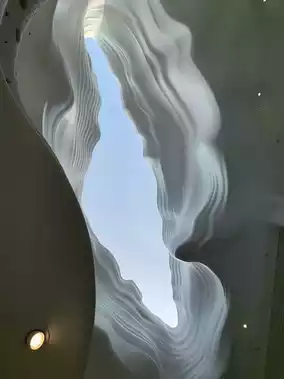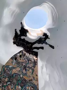 ✅At the entrance, you can see the Kucha Cave. There is a skylight above, which introduces the natural light from the top of the building into the room. I went there at night and felt that the photos would look better during the day~ The box and Sanlitun are nearby. After watching the exhibition, you can go shopping in the nearby mall