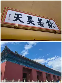 🕹️The main hall-the beamless hall, the brick arch bears the weight, the beamless beam, and there is a horizontal plaque of "Qin Ruohao Tian" written by Qianlong. The "Historical and Cultural Exhibition of the Temple of Heaven Zhaigong" is now set up in the hall.