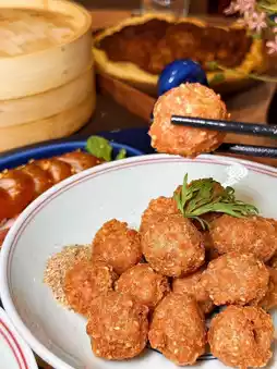The skin is fried to a crispy texture, and the plump prawns are covered with cheese. The juicy shrimp meat and rich cheese are blended together. It is simply delicious!