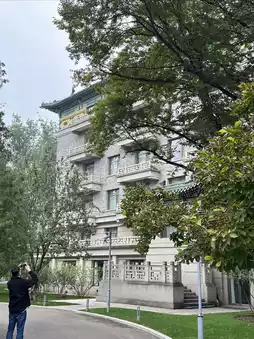 Beijing Friendship Hotel is located in the core area of Zhongguancun High-tech Park. It is adjacent to higher education institutions. Behind the gray walls and green tiles, there are more than ten buildings such as the VIP Building, Friendship Palace, Su Garden, and Ya Garden. The VIP building is the center, and the other courtyards are arranged in a fan shape. Lush green trees are dotted between the communities, and the pavilions and corridors are reflected in the clear pool water.
