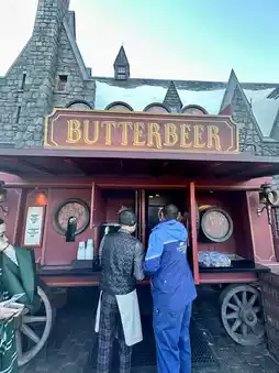 In addition, you must try Butterbeer, a popular drink from the wizarding world. It has a sweet and mellow taste and is refreshingly fizzy. It is perfect for cooling down while walking around.