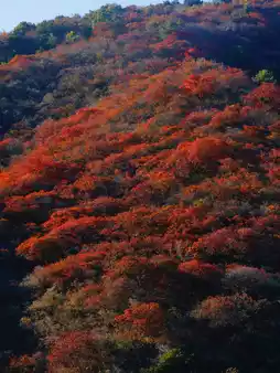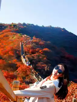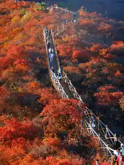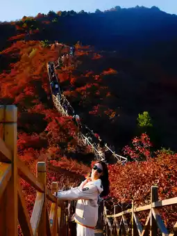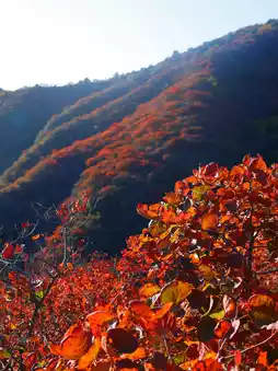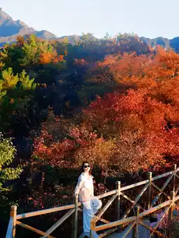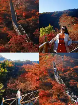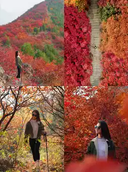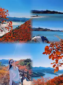 🌟 : When you reach the top of the mountain, the lake view and red leaves are captured in the photo. It is so beautiful that it takes your breath away! The Jinhai Lake at the foot of the mountain is a great camping spot to enjoy the tranquility and beauty of autumn! 🏞