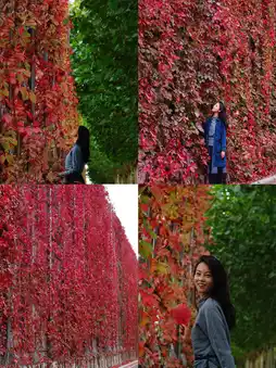 🎉 : Cycling to enjoy the red leaves, the large wall of ivy red leaves is like walking into a tunnel in another world! 🎇