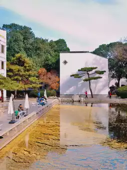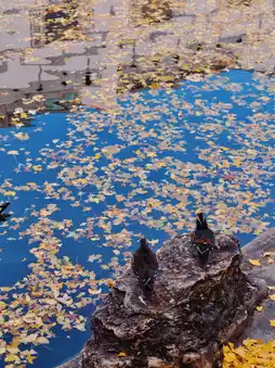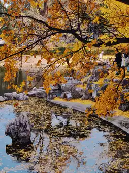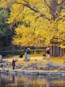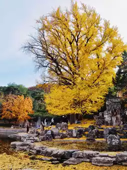 ✅There are two 300-year-old ginkgo trees on either side of Liuhua Pool. The leaves on one side have completely fallen due to last week's strong winds and cold weather.