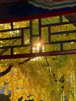 Autumn's beauty 🧡 starts at the south gate. Walk north along the central axis to see the ancient forest, red walls, green tiles, and golden ginkgo leaves. It's stunning! 😜