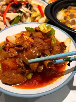 ☑️Spicy Chicken: 🐔 If you want to eat authentic spicy chicken, this is the place! There are a lot of noodles and chicken, and the soft texture of the potatoes and the spicy flavor of the chicken are perfectly combined, it's so authentic!