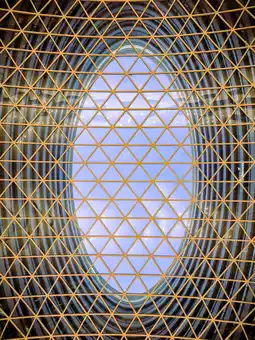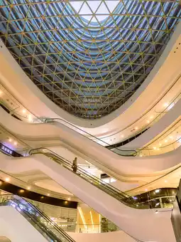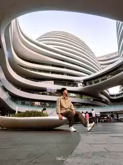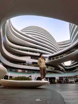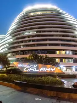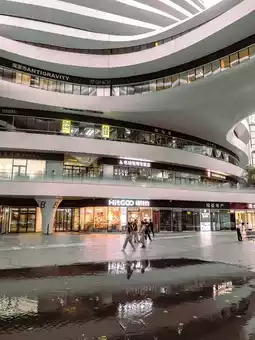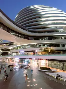 A modern building in the Soho district of Beijing, it is both an office building and a shopping mall. It may be starting to deteriorate now, and there aren't as many shops open as before.