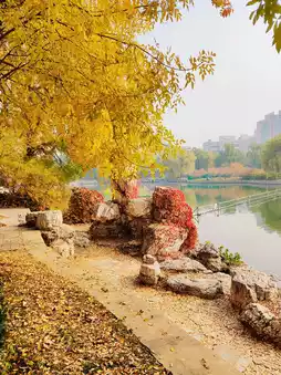 🍁🍂 As soon as you enter Longtan Park, you will be deeply attracted by the autumn colors in front of you. The golden ginkgo leaves, fiery red maple leaves, and green pines and cypresses are intertwined, like a picture carefully drawn by nature. Walking along the path by the lake, the breeze blows, the lake ripples, and the sunlight shines on the lake, sparkling and beautiful.