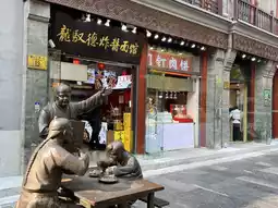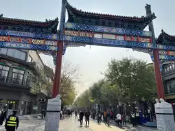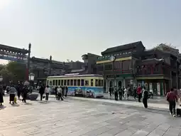 Qianmen Street is a cultural street and pedestrian street with restaurants, food stalls, and souvenir shops. It ranges from street food to fine dining. This wide pedestrian street has many alleys and tram tracks running through it. It is located in the heart of Beijing, near Tiananmen Square.