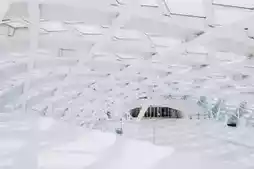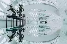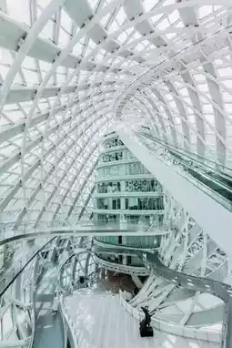 🌠 Looking up, it looks like a dragon winding through the air. Sunlight shines through the glass, creating a dreamlike scene.