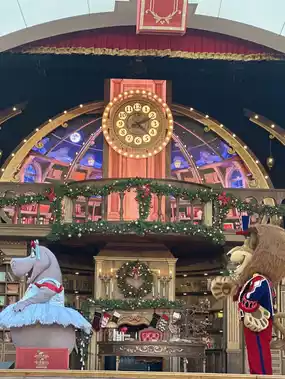 🎁✨ The interior is decorated in green and red tones, matching the festival. There are places to take pictures at various points. Special for this period, you can watch the Christmas show of the characters in various movies. It's so much fun. There's also a Christmas market zone.