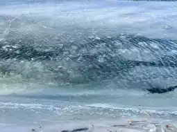 It is winter now, but the ice is not completely frozen. Don't walk on the ice. It is too dangerous. However, there are holes in the ice for fishing.