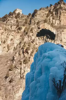 | A super large ice waterfall at the foot of the Great Wall.〰️