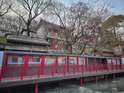 Suzhou Market Street in the Summer Palace was built during the reign of Emperor Qianlong. It is said that it was constructed for a favorite concubine who was a nun and missed her hometown of Suzhou after moving to Beijing. To make her feel at home, Emperor Qianlong created this street to resemble Suzhou, with shops lining both sides and a small river flowing through the middle, stretching about 300 meters. However, during our visit, it was under renovation.