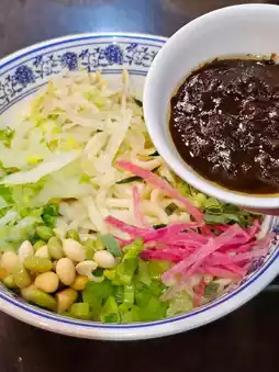 In China, the number 8 is considered a number that brings wealth, so there are a total of 8 ingredients in Jajangmyeon, including soybean paste. When you mix these ingredients and take a bite, the noodles are very soft and salty, which is really delicious. It's a completely different feeling from sweet Korean Jajangmyeon.