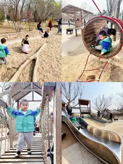2. Free outdoor leisure park⛲️ and playground, more suitable for children to play, with slides, climbing nets, swings, sand pits, etc. There are several Monet-style green bridges beside the stream. It will be more beautiful after the flowers bloom and the trees turn green! It is surrounded by green plants and feels like a street park.