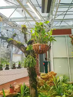 Located on the west side of the Environmental Protection Plant Area in the National Botanical Garden (South Garden), the Orchid Garden is a glass greenhouse with a steel frame structure, covering an area of approximately 300 square meters. It houses more than 400 different orchid species from around the world, and is divided into multiple areas to meet the cultivation needs of different orchids. The Orchid Garden not only displays many rare orchid varieties, such as the Paphiopedilum malipoense, but also features educational information on the surrounding walls about orchid "family trees," habitats, mimicry, and pollination.