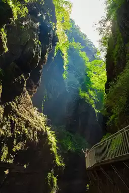 Route: Entrance (Dragon Waterfall) ➠ Make friends in the tent and have some tea ➠ Adventurer Plaza (via ferrata, suspended ladder, paddle board) ➠ Fanchen Valley, Suishi, Shiyang ➠ Canyon Theater (come and perform) ➠ Xiaoyao Valley (starting point for hiking)