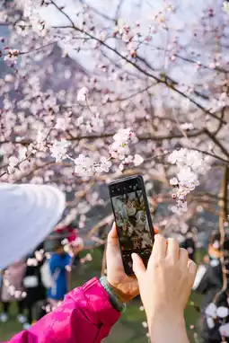 City wall + peach blossoms: Shoot upwards from the arrow windows or battlements of the city wall, with the flower branches reaching into the lens, to capture a sense of history.