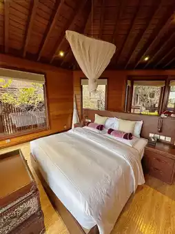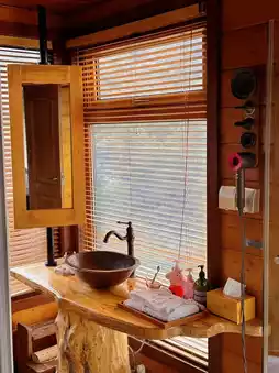 It's like a cabin from a fairytale world. Each tree house is unique. 🛖 The rooms are super cozy and well-equipped.
