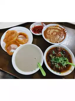 🍴Breakfast: We chose Yin San Dou Zhi, a popular restaurant near the Temple of Heaven. We ordered douzhi, miancha, jiaoquan, and braised meatballs. I almost threw up after trying the douzhi. It has a sour and stinky taste😥. I tried to find a good way to eat it but couldn't convince myself, so I ended up giving it to my boyfriend😙. Jiaoquan is crispy and doesn't have much of a taste on its own. Miancha is rich, and the braised meatballs are savory. These two were more acceptable. Overall, as a southerner, I'm not used to the taste😂. I'll just say I tried it.