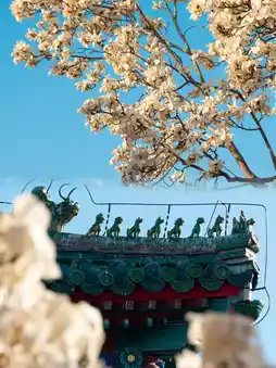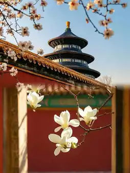 - Where the emperor fasted before ceremonies. The red walls, green tiles, and beamless hall are rare architectural features. The blooming magnolia trees in spring add to the ancient charm.