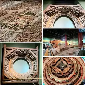 - **Development of Chinese Architecture**: Traces architectural evolution from primitive thatched huts to imperial palaces, featuring models like the **1:1000 scale model of ancient Beijing** and the **Longfu Temple caisson**—a Ming-era wooden ceiling adorned with astronomical carvings.