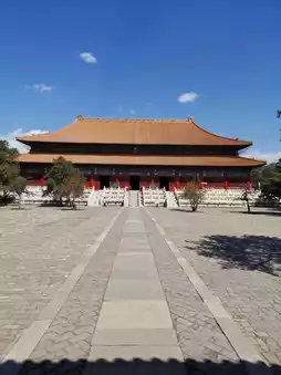 The highest-level wooden structure building in the Ming Dynasty, with a width of nine rooms and a depth of five rooms, 60 giant golden nanmu pillars stand upright, and the hall displays a bronze statue of Emperor Chengzu Zhu Di and replicas of Ming Dynasty cultural relics, showing the royal style.
