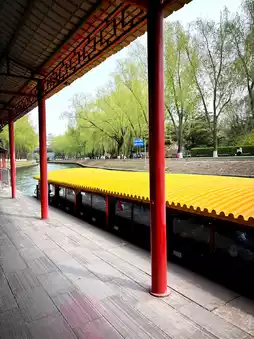 After the first stretch from the zoo to purple bamboo park, you have to change the boat to go to summer palace. It was a super simple process where we followed a guy with a yellow flag for a few 100 meters and directly boarded the new boat. The two different boats were slightly different from each other.