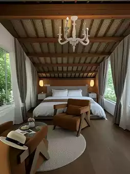 The Pinocchio room has its own tree-hollow reading nook! After reading "The Little Prince," you might find your child making up stories for the fireflies outside the window. Enjoy a magical breakfast basket on the terrace—raspberry pancakes are pure fuel for the day.🍯