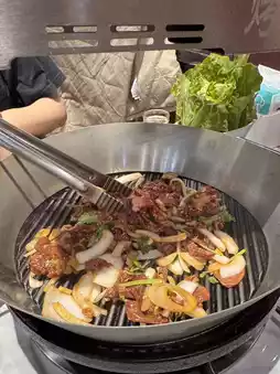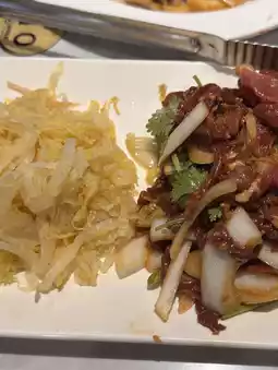 See a local netizen blogger in Beijing introduced this barbecue Liu headquarters, specially ran to eat once! It's Beijing roasted barbecue, this is also considered an old brand and old shop, Beijing, in addition to barbecue season and barbecue Wan two state-owned, privately owned is barbecue Liu. The firepower and aroma of the charcoal-fired iron plate are still more fragrant than the electric grill. The overall meat part is quite fresh, and the onions are not spicy. It belongs to the sweet aroma, signature lamb sauerkraut hand-cut lamb with sauerkraut is very fragrant, lamb fat seeps into the sauerkraut. Thyme Grilled Chicken Leg The chicken leg was tender, but the thyme flavor was not tasted. Grilled fresh beef meat is quite fragrant and tender, and the taste is also good! Quite fresh meat slices, grilled beef ribs This is recommended to grill longer. The taste will be better, black tofu thread mixed with cabbage core is very crispy, the taste is not salty not light just right! Fried bun slices wrapped in egg liquid fried, crispy crust, homemade sour plum soup good, homemade not sour plum essence. They have a good detail, that is, there is an iron ring, which can prevent oil splashes! And the waiter helped to bake, the service is still quite good, overall recommendation is still great. #Beijing Food #Beijing Food Exploration #Beijing Roast Barbecue #Old-Fashioned Restaurant