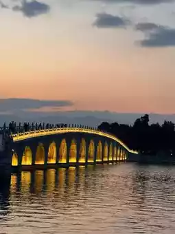 Seventeen-Arch Bridge: Stretching across Kunming Lake, adorned with 544 unique stone lions guarding its railings, photographers flock here for the spectacular golden light piercing through the arches at sunset.