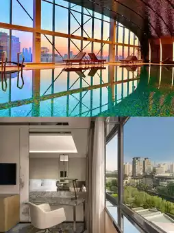 The hotel is adjacent to Wangjing Central Park in the north and a natural garden in the south.