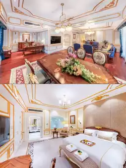 My room was spacious and bright with a great sense of space. The room features a design style that perfectly combines classical layout with modern comfort. Exquisite carvings, classical furniture, and unique ceiling designs give the entire room a clear sense of dimension. The bedding was soft and comfortable, ensuring a good night's sleep. The room is equipped with central air conditioning with humidifying and aromatherapy functions, allowing me to enjoy comfortable air even in the dry northern climate. Additionally, silk bathrobes and velvet slippers, gleaming marble bathrooms equipped with a full set of gold-plated bathroom fixtures, and French brand L'Occitane bath products all showcase the hotel's luxury and quality.