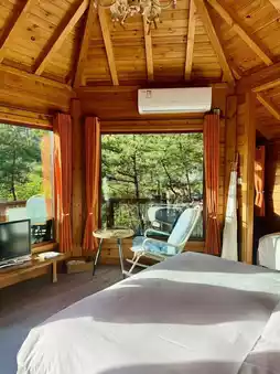 A must-stay near Beijing +1 so healing you won't want to go home! This is the fairytale treehouse hidden in Yunfeng Mountain, Miyun. Open the window to see the reservoir's shimmering waters, go downstairs to enter a fairytale world. Kids play wildly until dark without getting bored - this is definitely the ultimate weekend getaway near Beijing!