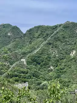 Second paragraph, mountain view. Further ahead is the "Nine Bends and Listening to the Piano" climbing point, where you can see the Great Wall and explore the caves (1 km).