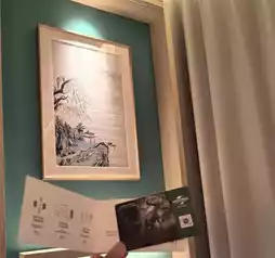 The room featured a luxurious double bed with a soft, comfortable mattress and a sofa. Everything was neatly arranged, and the bathroom had separate shower and functional areas, kept clean and tidy. Amenities like disposable toiletries, cotton pads, shower caps, and cotton swabs were provided. The fridge was stocked with Coke, Sprite, sparkling water, and plenty of mineral water, while the coffee table had tea bags. The room's Chinese-style decor, including a landscape painting from the National Museum on the wall, showcased five-star quality in every detail.