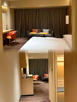 Hyatt Regency Beijing Wangjing blends hutong charm into a CBD skyscraper! 🏙️ The hotel transforms into a "floating glass courtyard" above the 798 Art District🏮, with a lobby adorned by bamboo lantern walls inspired by the "A Thousand Li of Rivers and Mountains" painting🖼️. Elevators feature LED screens with vintage Beijing pigeon whistles🕊️—where tech meets tradition in a cyber-hutong vibe! ✨ Even the carpets hide pigeon patterns~ 🐦