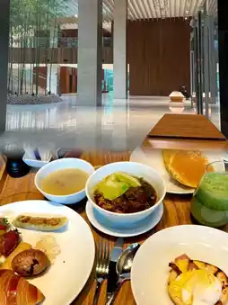 Breakfast features fresh "douzhi" (fermented bean drink) with "jiaoquan" fried rings + zhajiang noodles🍜—authentic Beijing flavors! 🥢 The Chinese restaurant’s "Hutong New Feast"🍴 pairs Peking duck with molecular pea cakes~ 🍧 Afternoon tea comes in glassware with imperial-style pastries🍰—too pretty to eat! ✨ Mini-bar is complimentary🍹, stocked with "Beibingyang" soda and "Daoxiangcun" treats~
