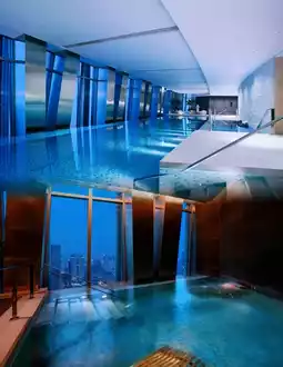 The 78th-floor infinity pool, with its glass wall design, creates the illusion of swimming among the clouds, offering a visually stunning photo opportunity.