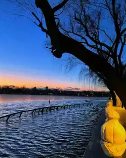 Beihai White Pagoda Sunset: The pagoda's silhouette merges with the lake and sky, creating a serene and romantic atmosphere.