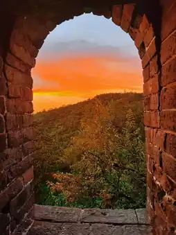 Jinshanling Great Wall Sunset: The winding wall atop mountain ridges glows under the sunset, revealing the grandeur of history and nature.